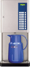 Gehäuse Edelstahl 1,0 mm gebürstet, Abmessungen H: 54 cm, B: 33 cm, T: 45,5 cm, Gewicht 27,8 kg Anschlusswert 230 V / 50 Hz / Ws. / 1.750 Watt Heizleistung 1.600 Watt elektronisch geregelt, geringe Temperaturschwankung, im Stand-By +/- 0,5 Grad Cel., dreifach isolierter Boiler 2,5 l Stromaufnahme max. 7,4 Amp., im Stand-By ca. 0,17 A / 40 Watt Wasserzufuhr direkt an die Wasserversorgung 3/8 Zoll Leistung 4-8 Tassen / Minute, Portionsgrößen 20-300 ml / 500 ml, Stundenleistung ca. 22 l, 4 variabel befüllbare Produktbehälter |